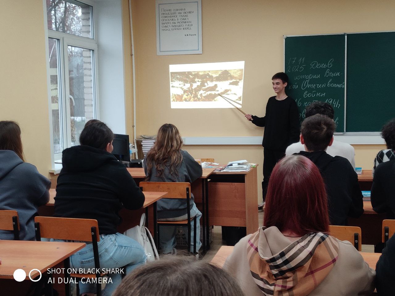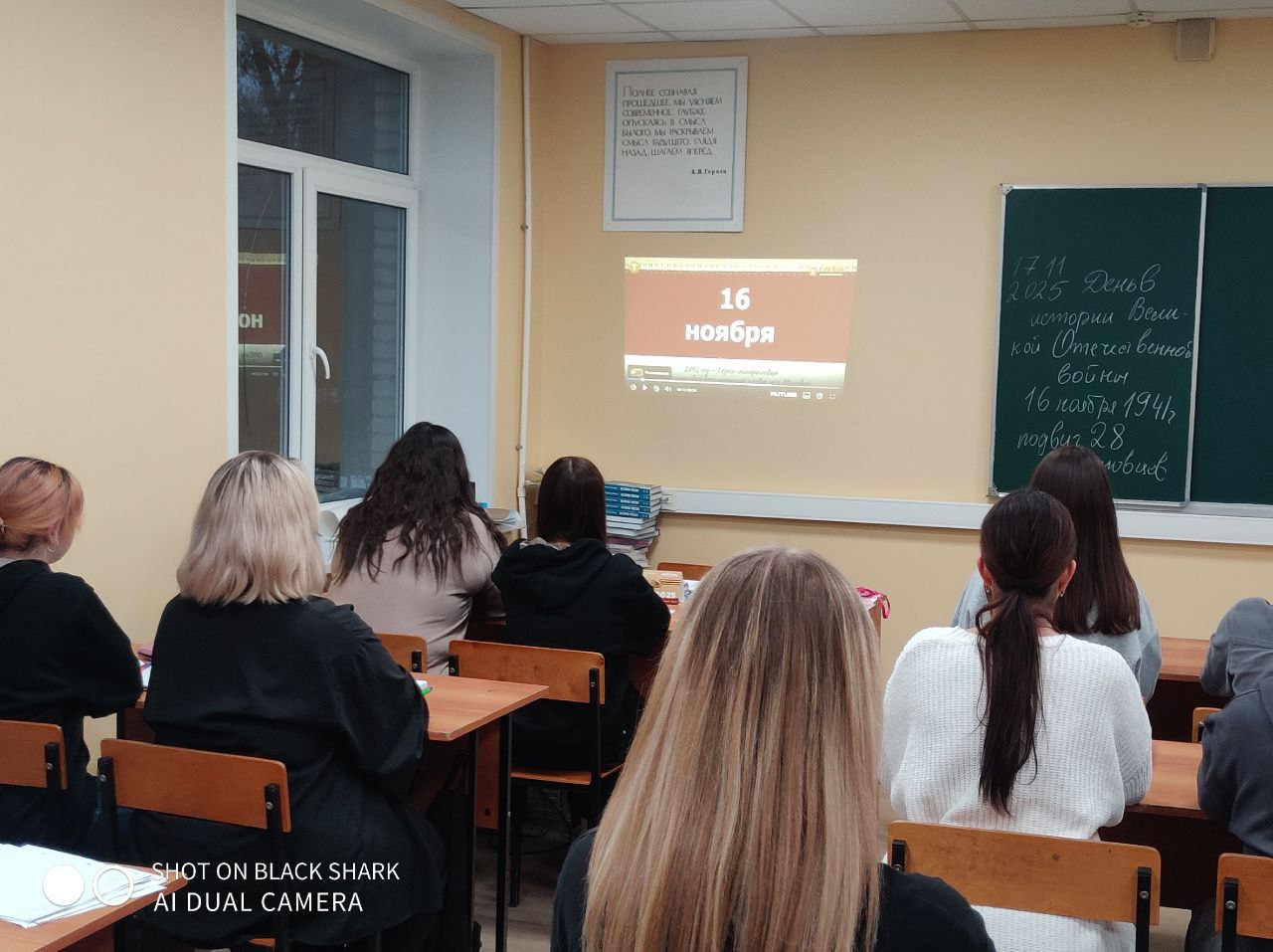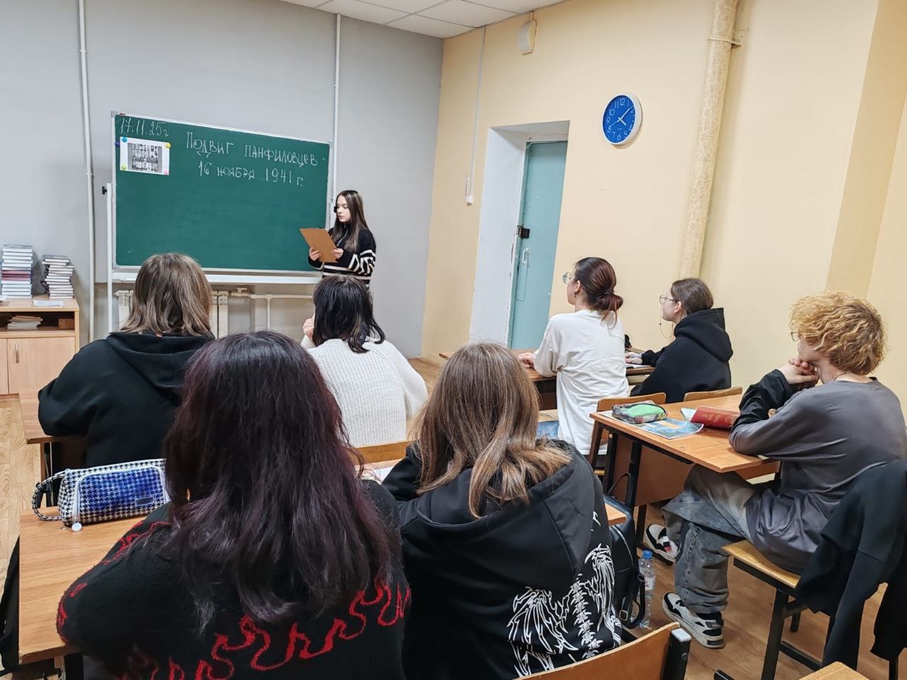17 ноября 2025 г. в СП 5,6 Щелковского колледжа для учебных групп 6511/1, 5510, 6511/2, 5537, 5524, 6434, 5547, 6529/2, 6529/1, 6568 прошел урок мужества "Их было только 28...", посвященный годовщине подвига героев-панфиловцев.