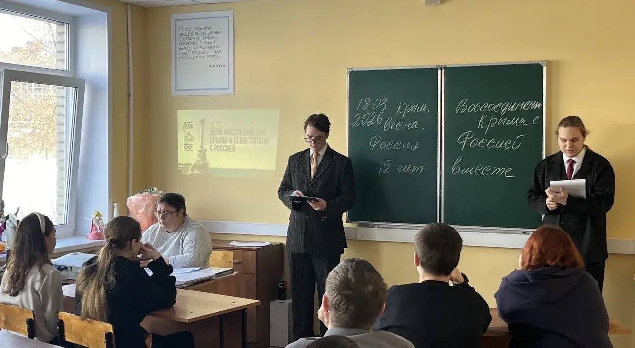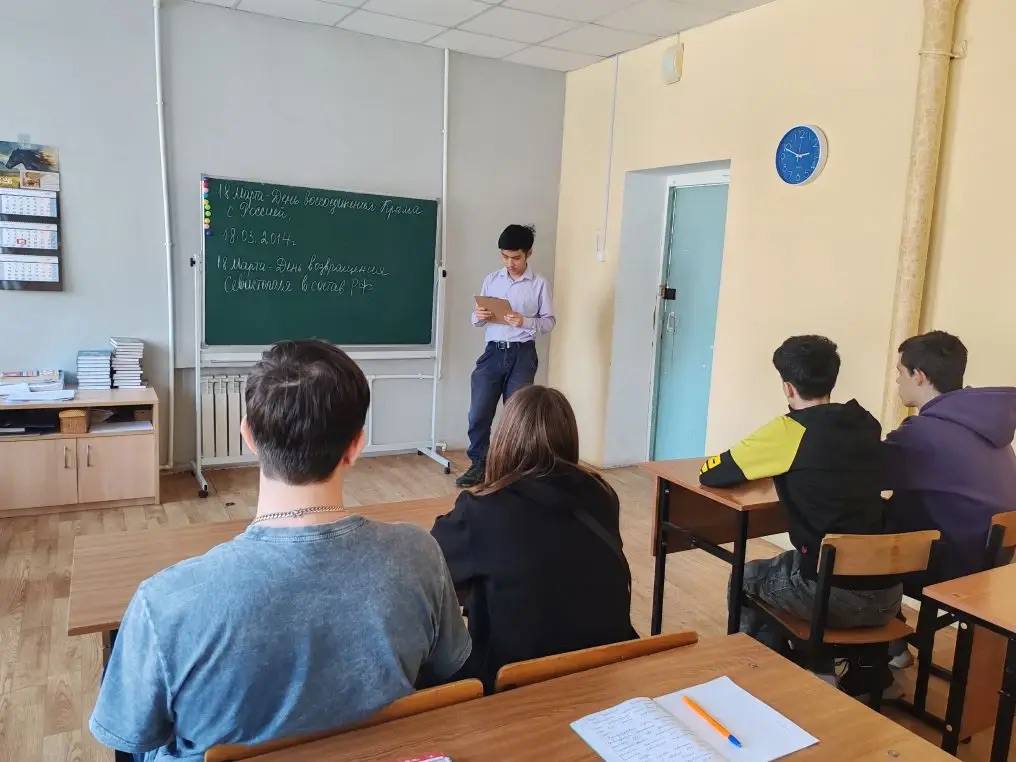17 марта в СП 5,6 ГБПОУ МО "Щелковского колледжа" в группах 5433, 5510, 6511/2, 6534/1, 5549 проведен патриотический час в формате историко-литературно-музыкальной композиции "Крым, весна, Россия", посвященный Дню воссоединения Крыма с Россией.
