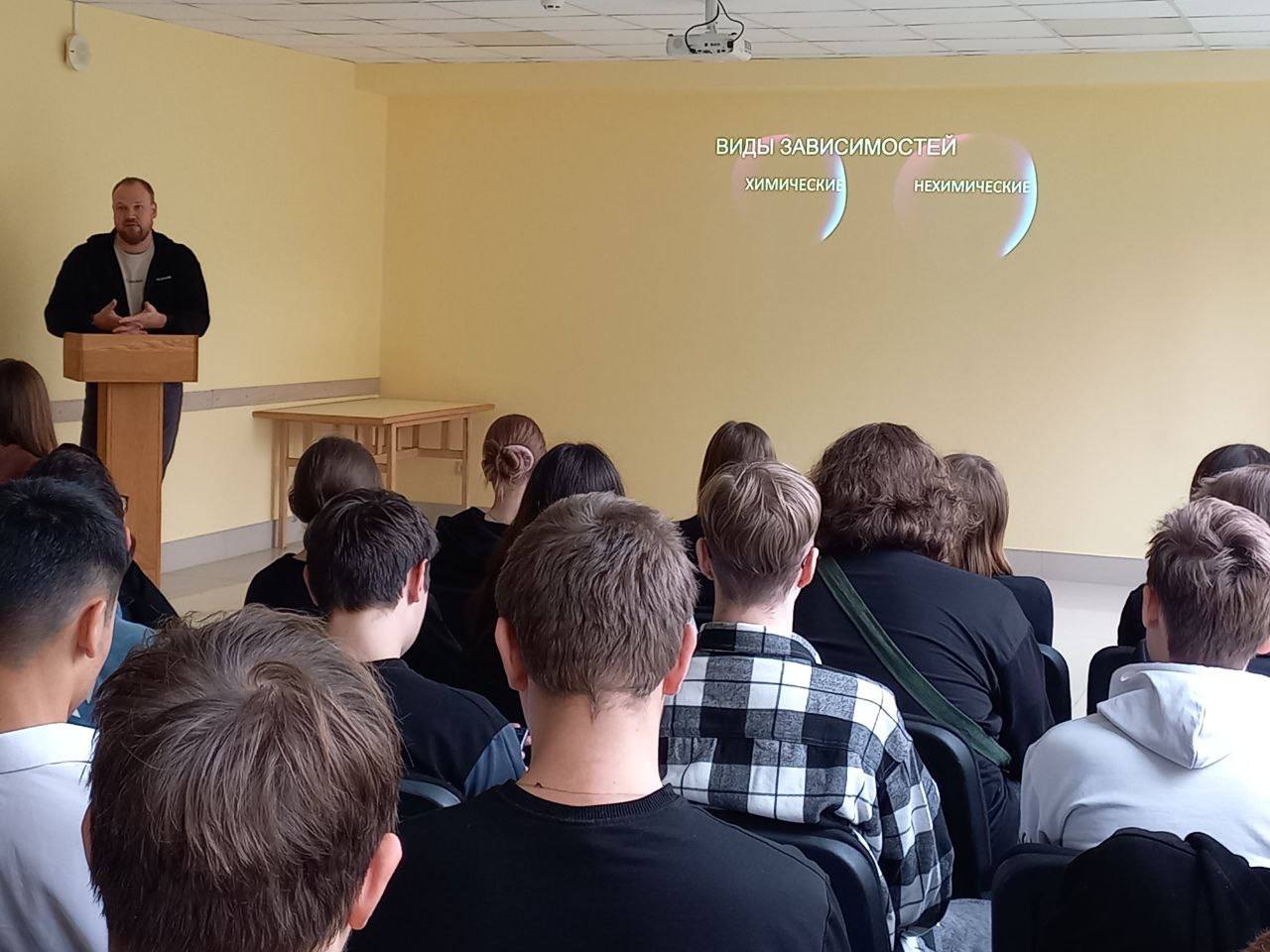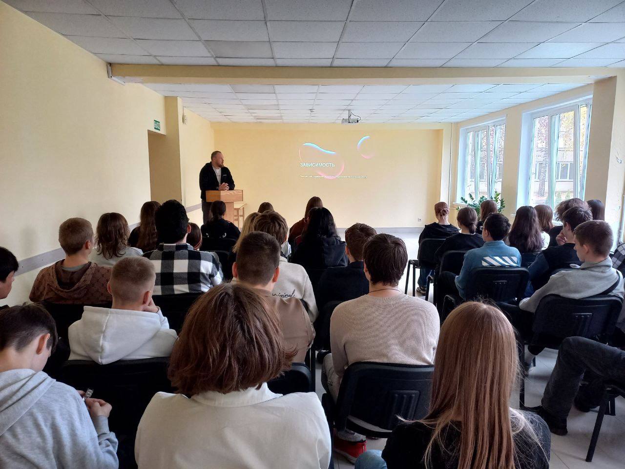 23 октября в СП-5,6 Щелковского колледжа состоялась откровенная беседа в группах 6568 и 6529/1 с популяризатором ЗОЖ Кириллом Николаевичем Тарасовым на тему "Зависимости. Виды, признаки, предупреждение".