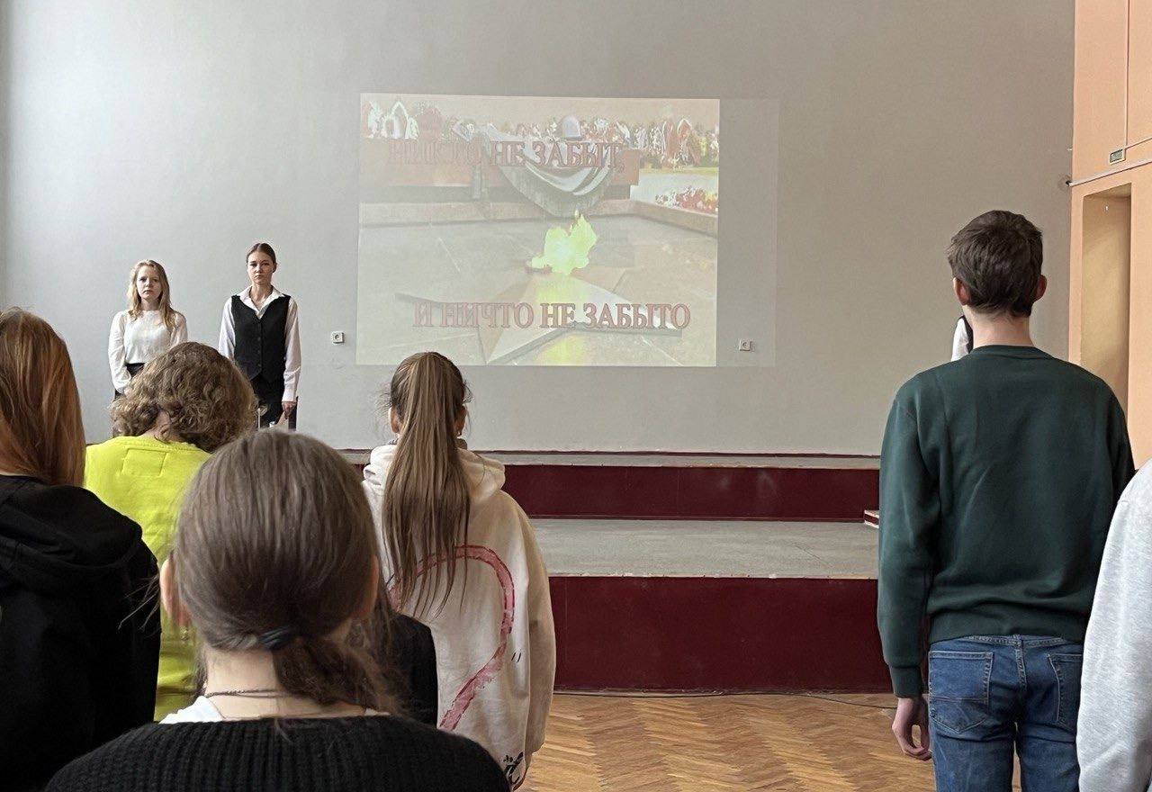 В рамках мероприятия студентам напомнили о трудностях, которые испытывали жители блокадного Ленинграда, "дороге жизни"-единственной транспортной артерии, связывавшей город с большой землёй и д.р. Студенты почтили минутой молчания всех павших в Великой Отечественной войне.