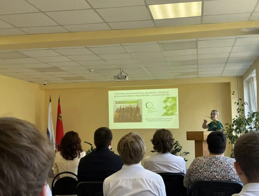 Юлия Олеговна Корнилова, заместитель директора по УВР, представила доклад «Партнеры чемпионатного движения: стратегии взаимодействия и перспективы сотрудничества».