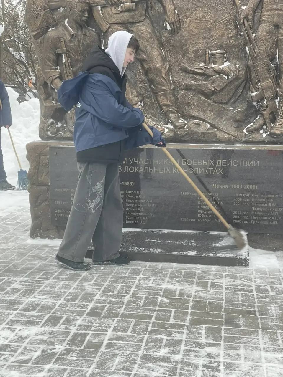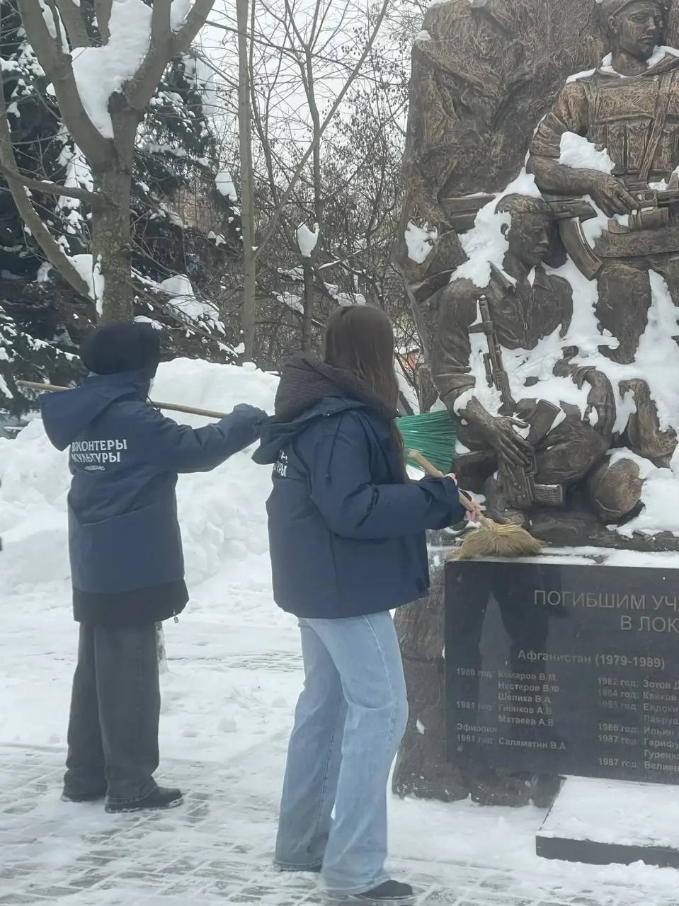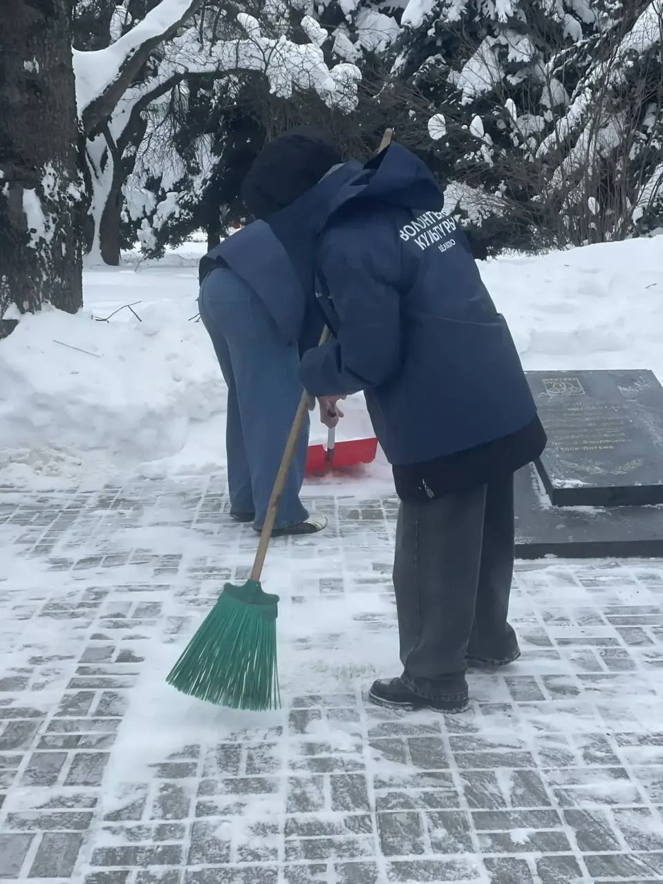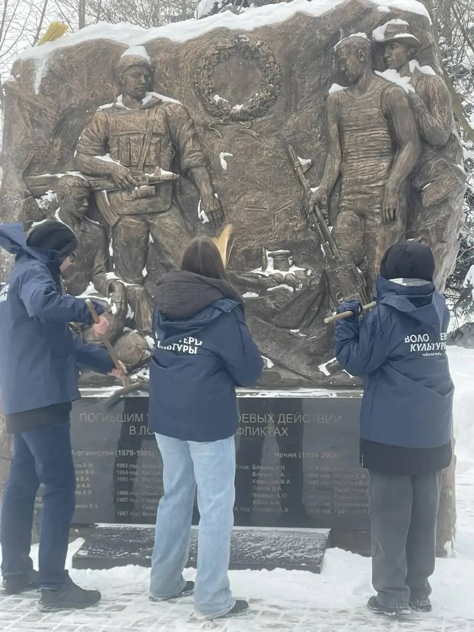 Волонтеры очистили памятник от пыли и наледи, приведя в порядок прилегающую территорию. Каждый из них понимает: чистота мемориала — это минимальное, но очень значимое «спасибо» тем, кто ценой своей жизни отстоял мир.