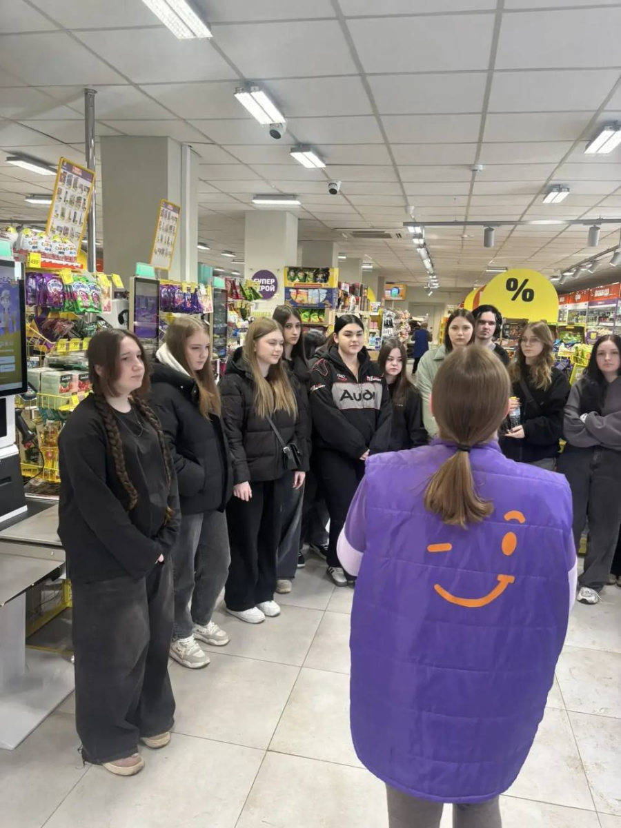 Во время визита студенты узнали, как формируются ассортимент и выкладка товаров , почему важно соблюдать температурный режим и сроки годности, а также как осуществляется контроль качества продукции. Особое внимание было уделено вопросам безопасности