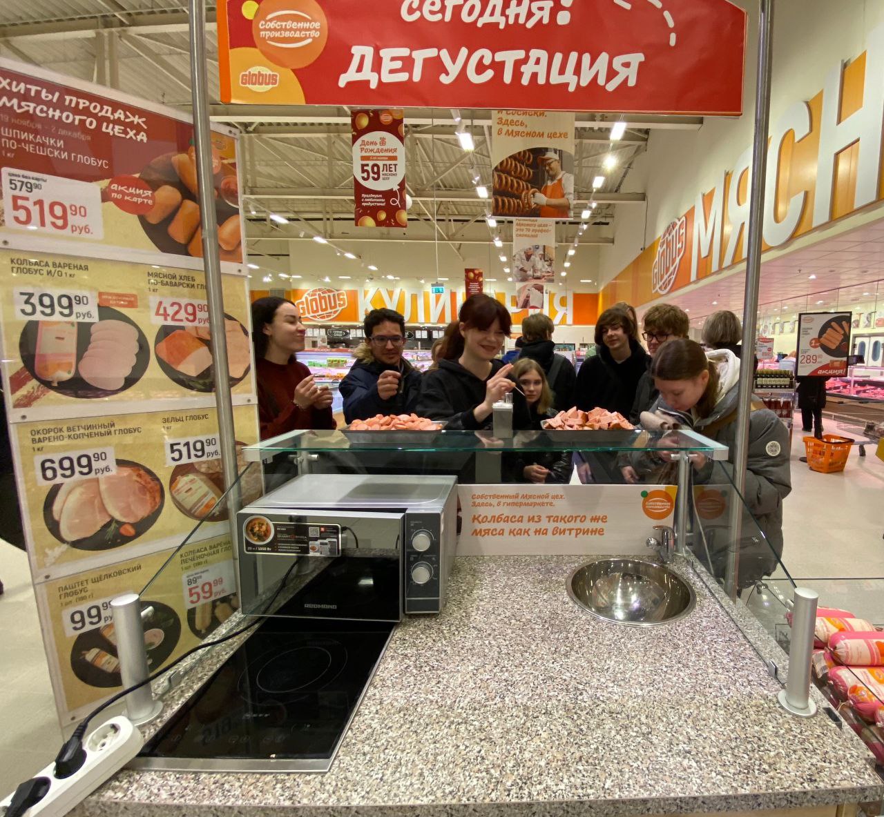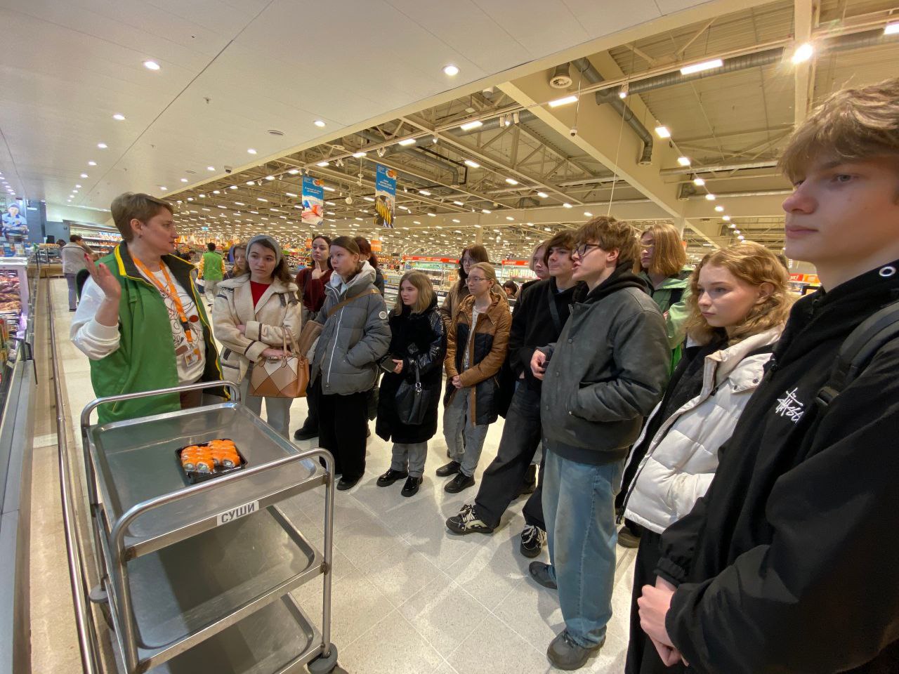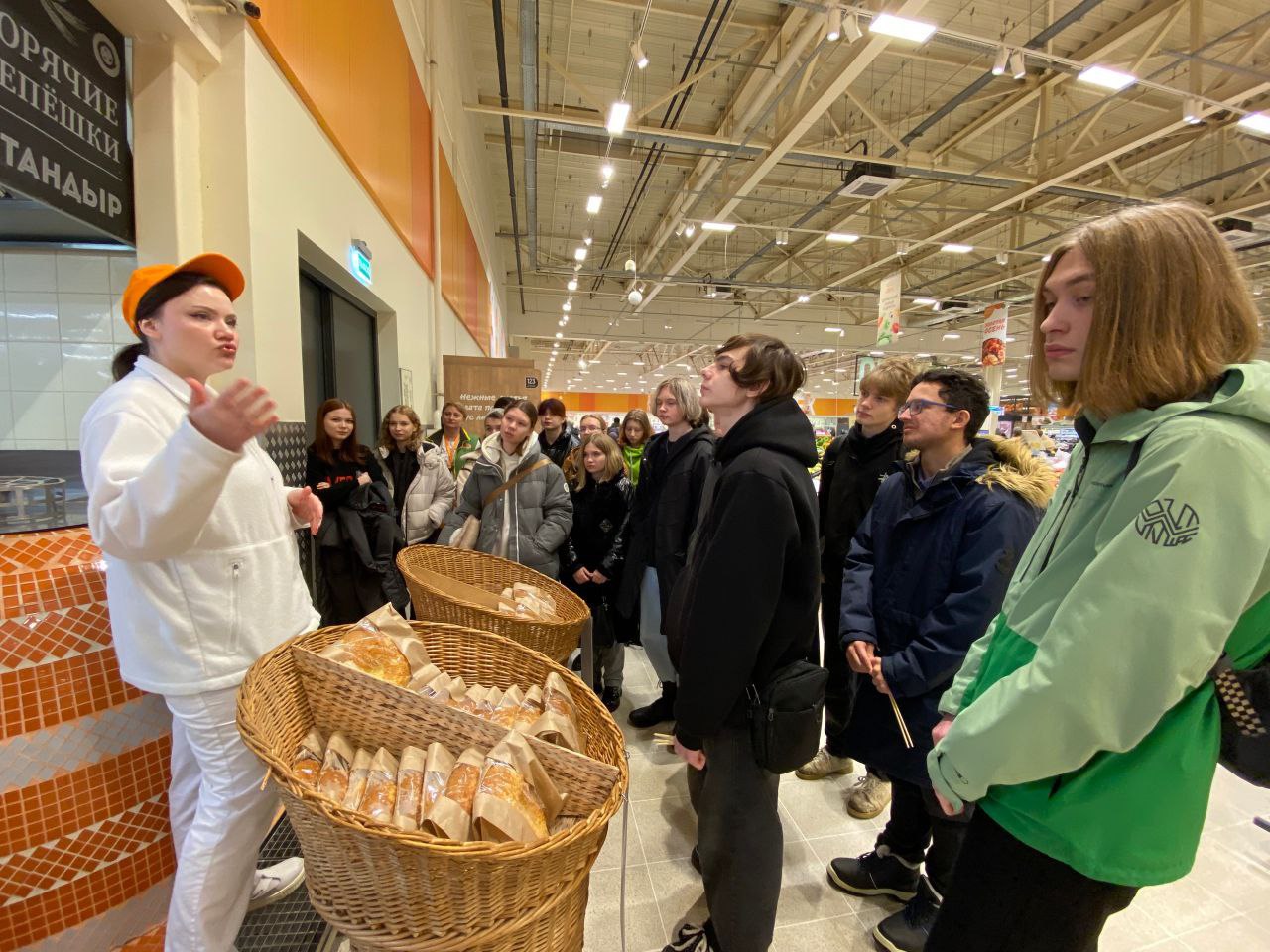 Вместе с руководителем маркетинга Пшеничной Ириной и заведующими отделов, студенты заглянули в самое сердце супермаркета — его производственные цеха: