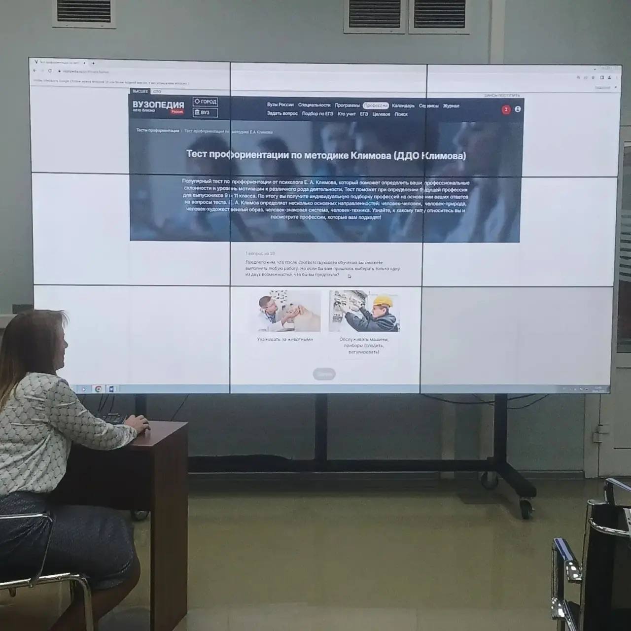 В конце экскурсии Лисова Елена Владимировна- начальник отдела кадров, трудовых отношений и социального развития и Ситникова Алёна Олеговна - главный специалист отдела кадров, трудовых отношений и социального развития, провели тест по профориентации и тестирование студентов по данной экскурсии.
