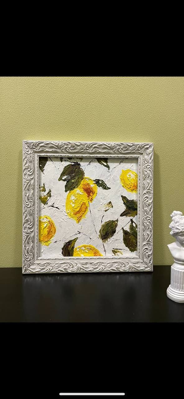 Студенты под руководством Цырено Л. В.научились смешивать текстурную пасту и с помощью мастихина наносить её на холст В результате получилась объемная композиция с лимонами
